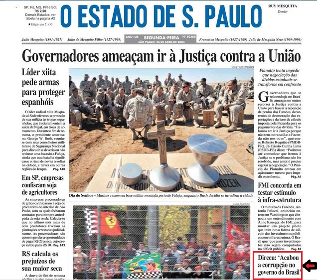 O arquiteto, urbanista e desenhista paranaense Roque Sponholz fez um achado. Foi ao fundo do baú e encontrou este recorte do Estadão impresso. Saiu na manchete e na página A5 da edição de 26 abril 2004.