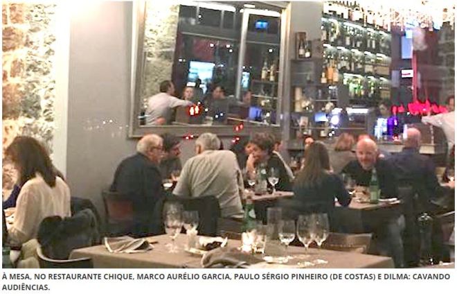 O instantâneo, publicado pelo Diário do Poder, qualifica o restaurante I Tre Bicchieri de “chique”. Não é. Restaurante chique não dispõe mesas grudadas umas às outras como casinhas de arrabalde. Em estabelecimentos de boa categoria, tampouco serão encontradas mesas alinhadas a poucos centímetros do balcão de serviço. O preço dos pratos propostos ‒ segundo cardápio disponível na internet ‒ equipara-se ao que se costuma praticar em restaurantes de qualidade mediana em Genebra.