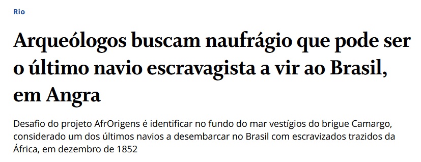 Em Angra, arqueólogos buscam destroços que podem ser do último navio negreiro a vir ao Brasil.