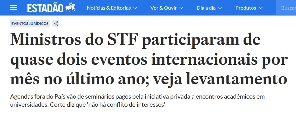 “Ministros do STF participaram de quase dois eventos internacionais por mês no último ano”.