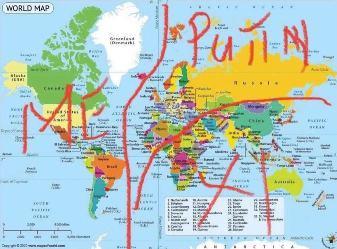 De fato, a cada dia que passa, nos apercebemos que, na cabeça de Trump, a ideia é ver nosso planeta subdividido em 3 zonas de influência. A primeira, que os EUA reservam para si, inclui as Américas e a Groenlândia. A segunda, destinada a viver sob influência de Moscou, cobre a Rússia, a Europa, os países da finada URSS e o norte da África. A terceira e última deve ser a área de influência de Pequim; compreende as demais regiões do mundo (ver mapa).