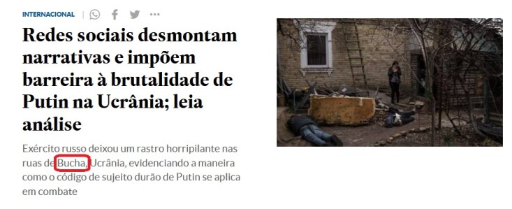O problema é que, em inglês, as duas letrinhas “ch” são pronunciadas “tch” – coisa que a gente aprende na primeira aula. Portanto, para permitir que um leitor brasileiro pronuncie corretamente o nome da cidade, é preciso escrever Butcha, não Bucha.