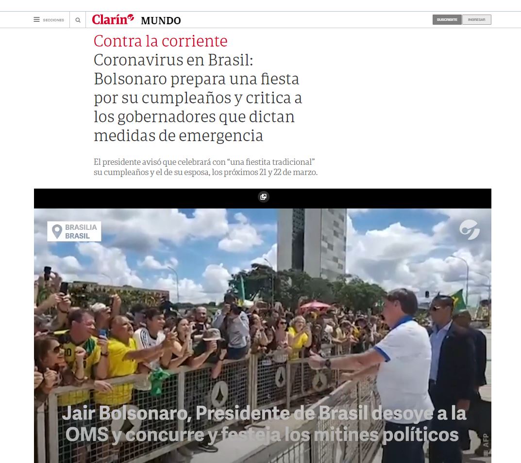 Notícia boa logo sai da pauta; notícia ruim, ao contrário, demora pra ir-se embora da manchete. O vexame que o doutor cometeu domingo passado, quando se jogou nos braços dos fanáticos de sua seita, ainda ecoa no resto do planeta. Nosso presidente tornou-se objeto de sarcasmo; por consequência, o país inteiro também.