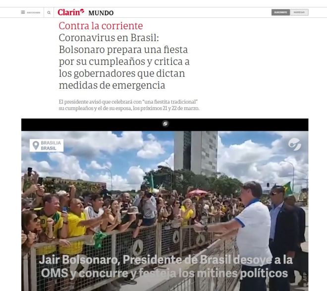 Atitudes como a do presidente neste último domingo são verdadeiro crime contra a nação. No espaço de uma hora, ele fez tudo o que tem de ser banido, caso se queira conter a expansão do vírus.