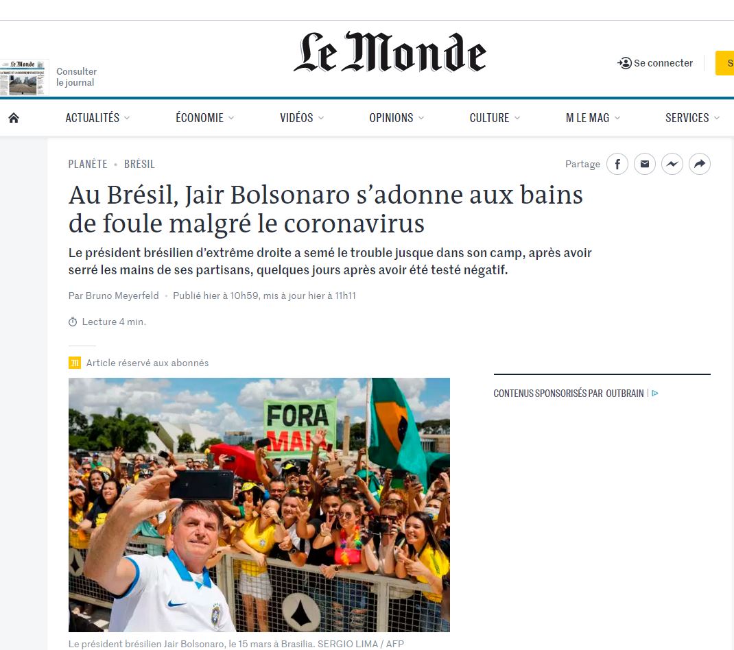 Além de governar sem pulso e transformar o Brasil em nau sem rumo a navegar em ritmo de pedalinho, doutor Bolsonaro nos envergonha lá fora. Sua desconexão da realidade – que já está sendo vista como caso psiquiátrico – não passa mais despercebida na mídia mundial.