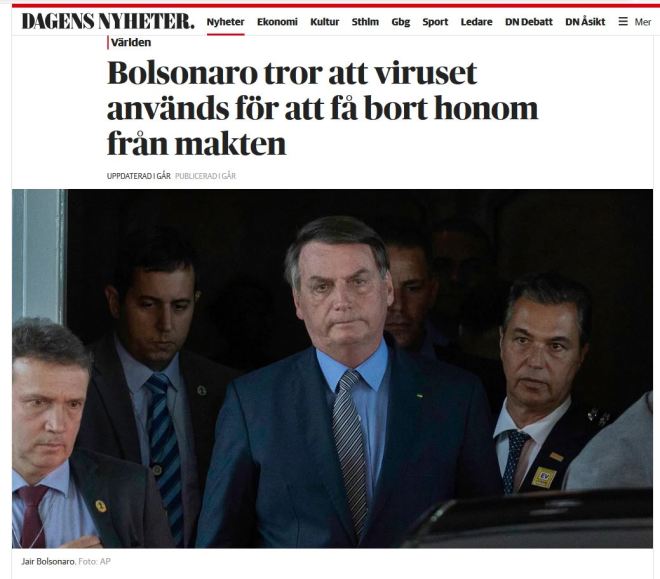 Ah, com a moderna tecnologia, a informação corre o mundo rapidinho. Boas ou más, as notícias alcançam os leitores, estejam eles onde estiverem. Chegou à longínqua Suécia a declaração do dono de uma igreja de cunho neopentecostal. Disse o homem: «O coronavírus é tática de Satanás para espalhar o medo». São palavras que desafiam o bom senso e deixam qualquer cidadão perplexo.