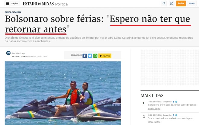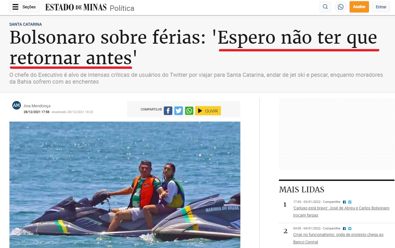 Artigo publicado pelo Correio Braziliense em 3 janeiro 2022