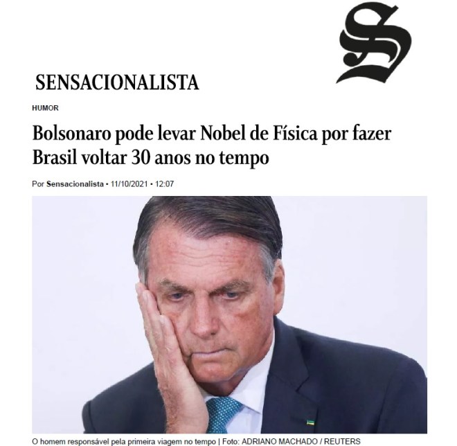 O presidente Jair Bolsonaro é concorrente fortíssimo para o Nobel de Física de 2021. Ele assombrou a comunidade científica internacional ao fazer o país voltar no tempo em 30 anos.