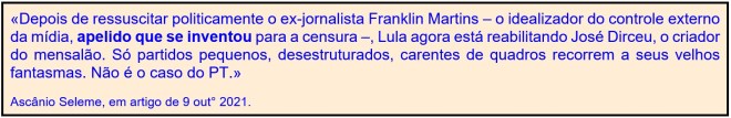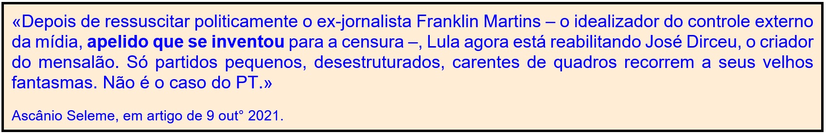 (*) Ascânio Seleme é jornalista. Trecho de artigo publicado no jornal O Globo de 23 out° 2021.