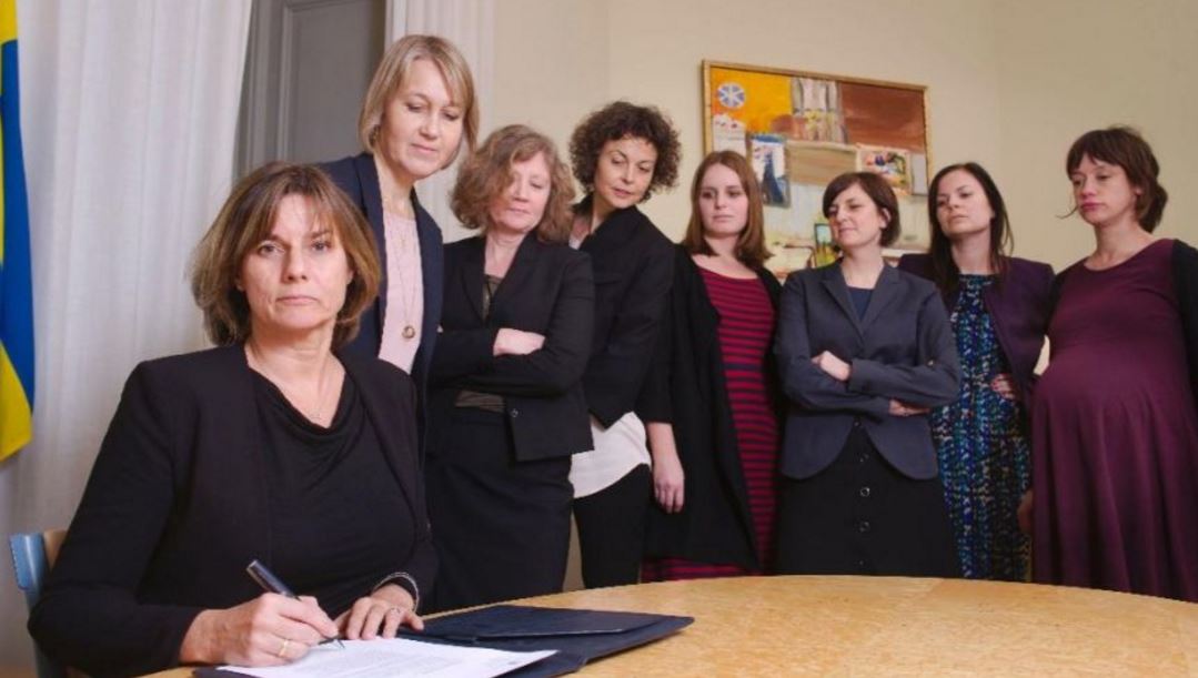 Indignado com a atitude do presidente americano, o governo sueco reagiu. Divulgou uma foto de uma de suas ministras cercada de equipe exclusivamente feminina. O retrato foi tirado por ocasião de assinatura de acordo sobre mudanças climáticas. Em sua página web, o governo sueco se declara feminista ‒ com muito orgulho.
