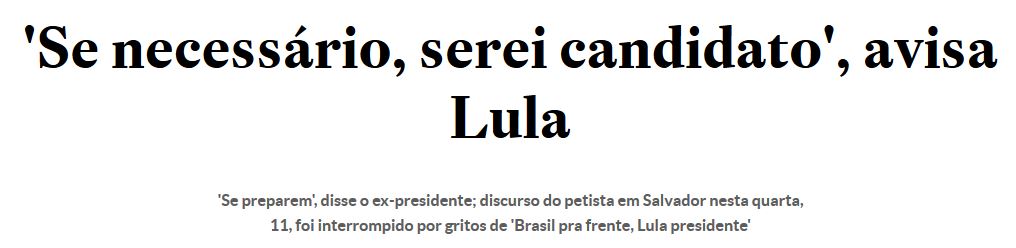 No começo da Copa América de 1997, Zagallo, técnico da Seleção, andava desprestigiado. Ao final, assim que o Brasil conquistou a taça, ele despejou sobre seus críticos: «– Vocês vão ter que me engolir!». Vinte anos mais tarde, Lula da Silva repetiu a tirada de Zagallo. Foi num discurso em Vitória, quando pesquisas lhe sorriam enquanto nuvens judiciárias já lhe escureciam o horizonte. Dirigindo-se à pequena minoria que, em sua imaginação, não votaria nele para presidente, soltou a mesma frase: «– Vocês vão ter que me engolir!». Acabou engolido pelos acontecimentos.