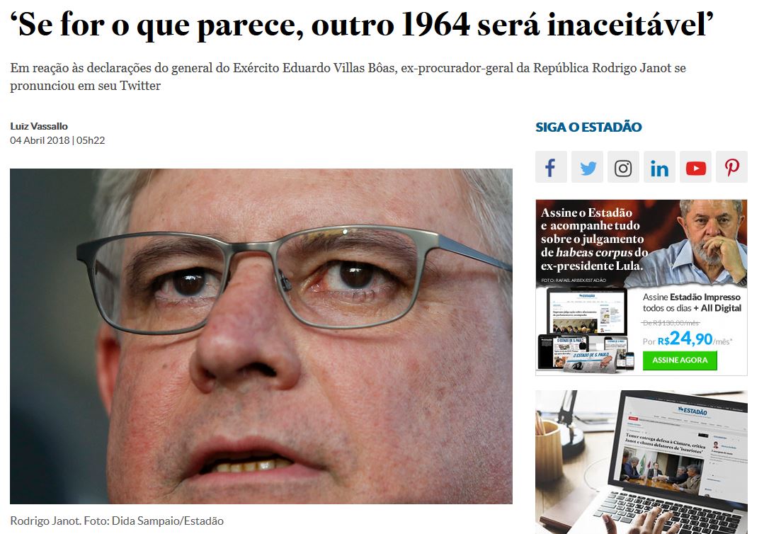 O de hoje nos foi brindado por doutor Janot Monteiro de Barros. O moço, que já ocupou o posto preeminente de Procurador-Geral da República, confessou que sua aparente bonomia esconde impulsos assassinos. Revelou que «quase matou» Gilmar Mendes, ministro do STF. Numa boa. Curtiu o ódio, premeditou o crime, carregou o revólver, encaminhou-se para o local da execução mas, na última hora, murchou.