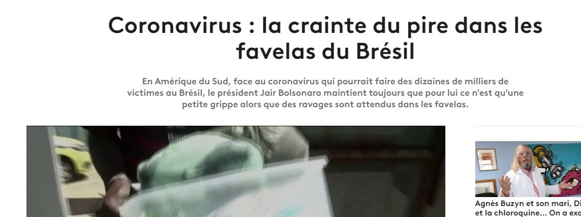 «O receio do pior nas favelas do Brasil» – é o temor expresso por France TV, conglomerado francês de mídia.