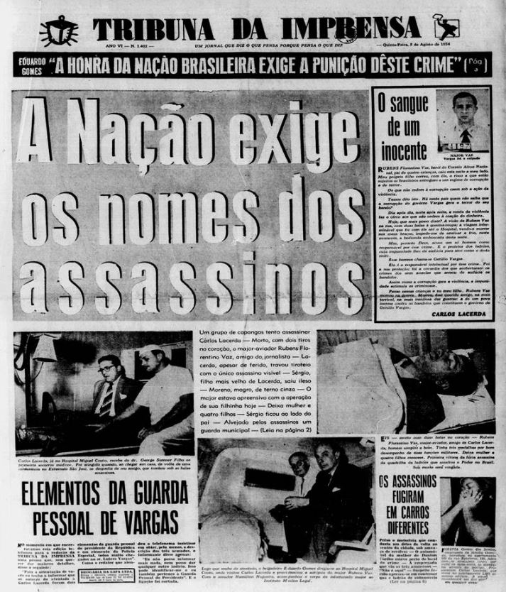 Em 1954, quando Vargas já estava no quarto ano de mandato presidencial, os ventos sopravam de quadrante adverso. Intensa campanha política, capitaneada pelo tribuno Carlos Lacerda, não dava trégua. Dono do jornal Tribuna da Imprensa, Lacerda não passava um dia sem lançar mais um ataque feroz ao presidente ‒ um ‘tirano corrupto’, em sua opinião.